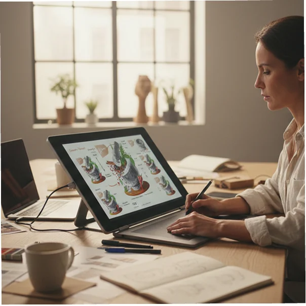 One of our concept designers now develops a high-converting concept for your Converts and draws the foundation of each product image by hand.